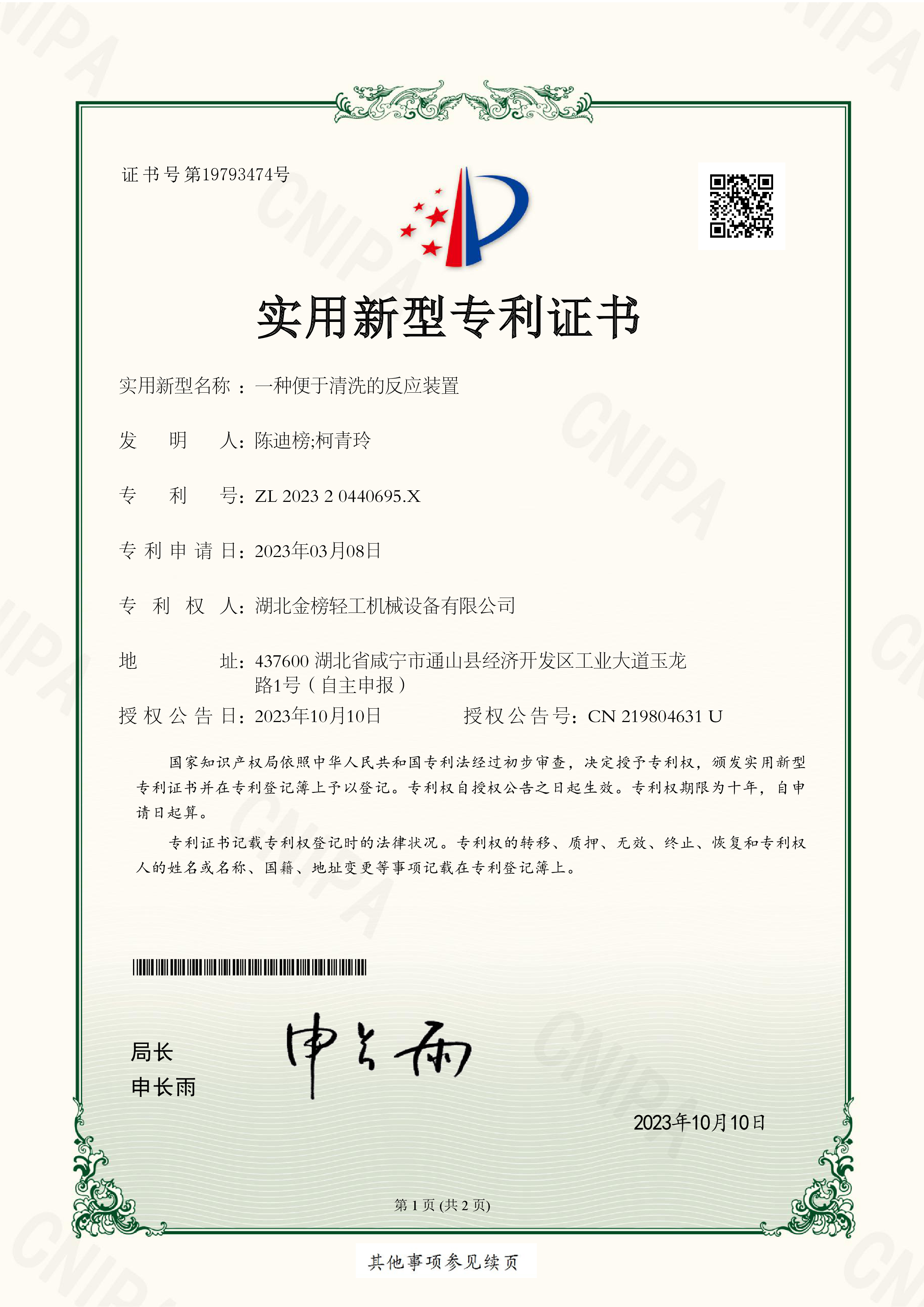 2023204406860-Utility model patent certificate